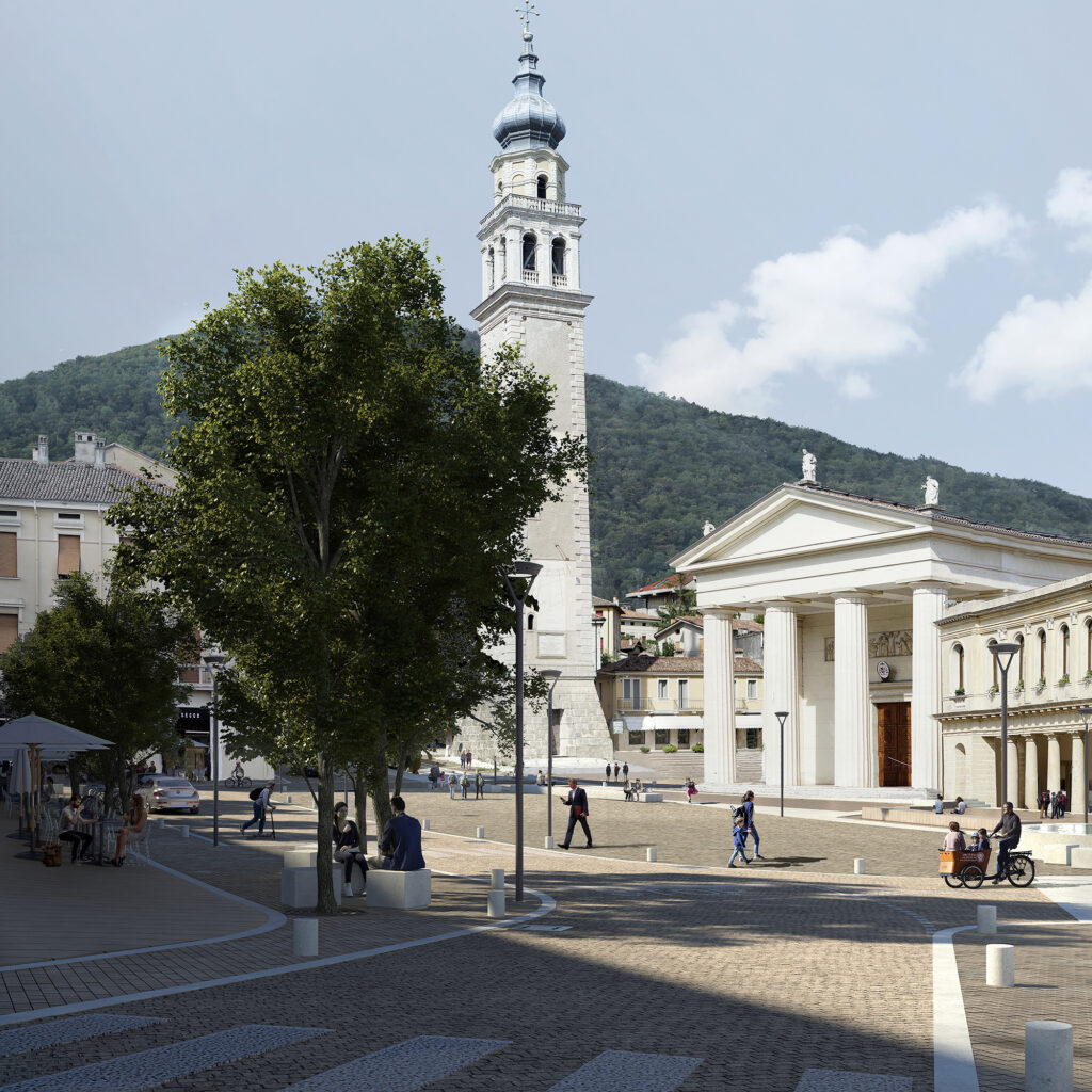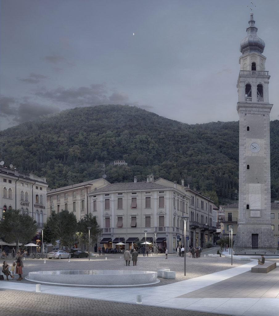 The project designed by Atelier Giavenale is a proposal for the new Piazza Marconi in Valdobbiadene. The redevelopment project of Piazza Marconi in Valdobbiadene aims to provide citizens and visitors with a lively public space with a strong identity, which can serve as a daily meeting point and space for events and celebrations. The main idea is to divide the square in different precincts, while still being perceived as a whole. The square is entirely paved with blocks of brownish-pink Porfido stone, with different finishing and size, while all the historic buildings are connected through a footpath in white Lessinia stone.